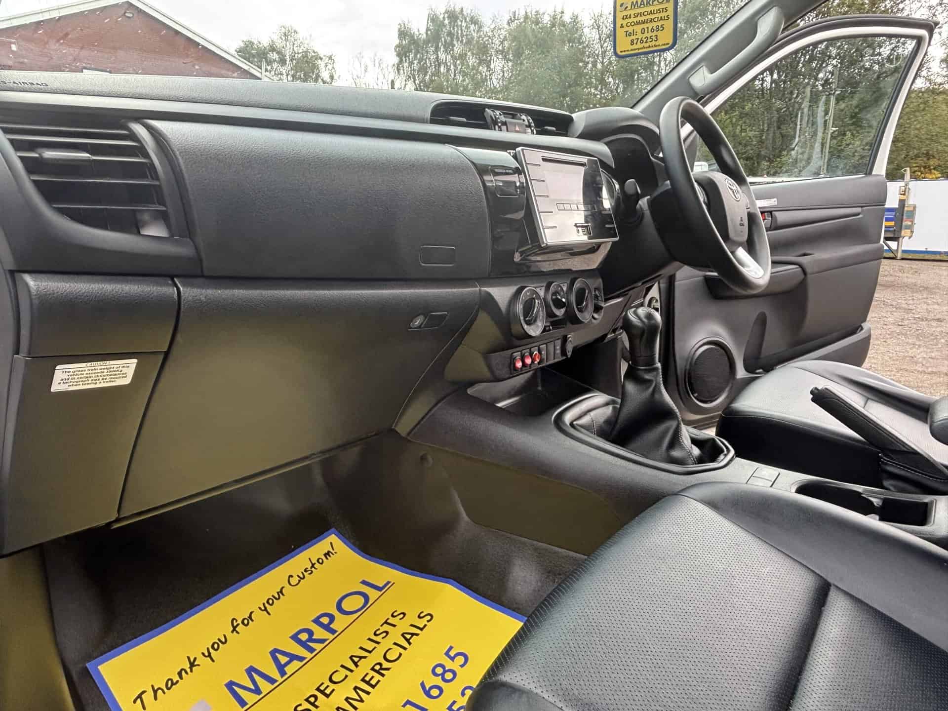 2 door pick up with extra cab / Electric windows and mirrors / Central screen display with trip computer Radio Bluetooth phone USB media Rear parking sensors and remote steering wheel controls / / Air conditioning / Rear Lockable Roller Mountain top with plastic load liner / Full size spare wheel / MOT expires 29/09/2026 / Toyota Wallet with all books and 2 remote keys